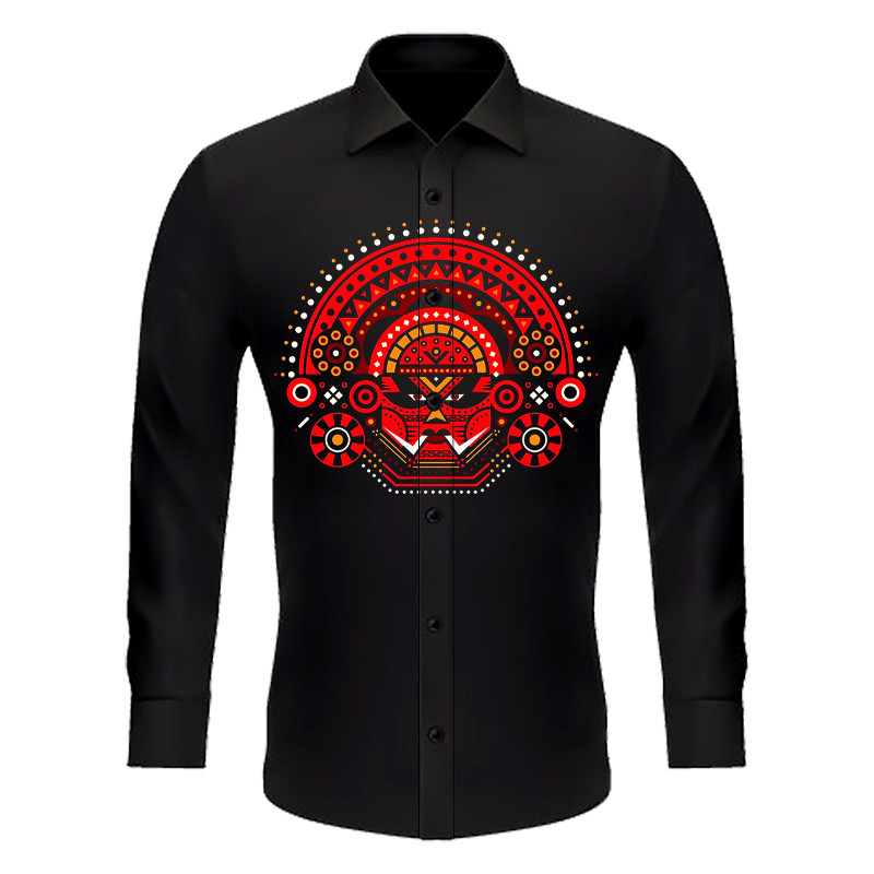 KERALA ONAM THEMED SHIRTS; THEYYAM AND KATHAKALI SHIRTS; KATHAKALI AND THEYYAM FUSION SHIRTS; UNISEX REGULAR FIT SHIRTS;