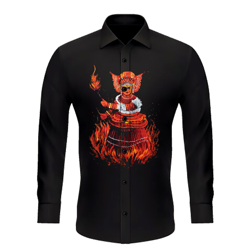 KERALA ONAM THEMED SHIRTS; THEYYAM AND KATHAKALI SHIRTS; KATHAKALI AND THEYYAM FUSION SHIRTS; UNISEX REGULAR FIT SHIRTS;