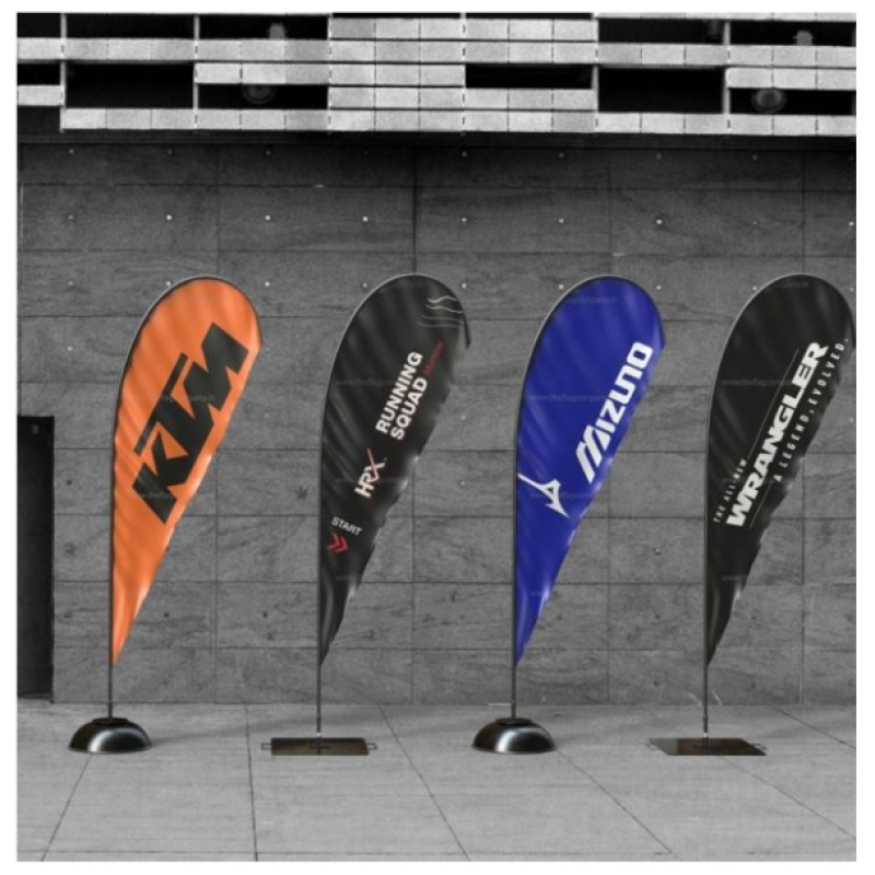 Bow flags are the perfect outdoor and indoor banners for drawing attention to your business, product, promotion, or location. Our custom feather signs are made of 110gm polyester material, which is very durable and weather resistant – making it great for outdoor use.