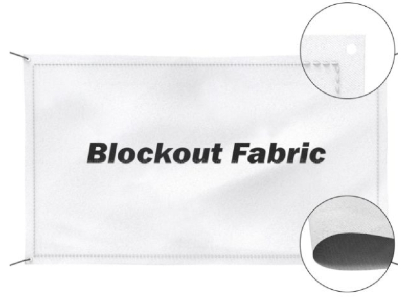 - Blockout fabric is a very innovative material. It has great strength and durability allowing it to be used in all types of weather. The bulges on polyester fabric banners are hardly visible.